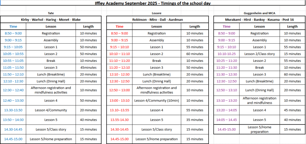 Timings of the School Day