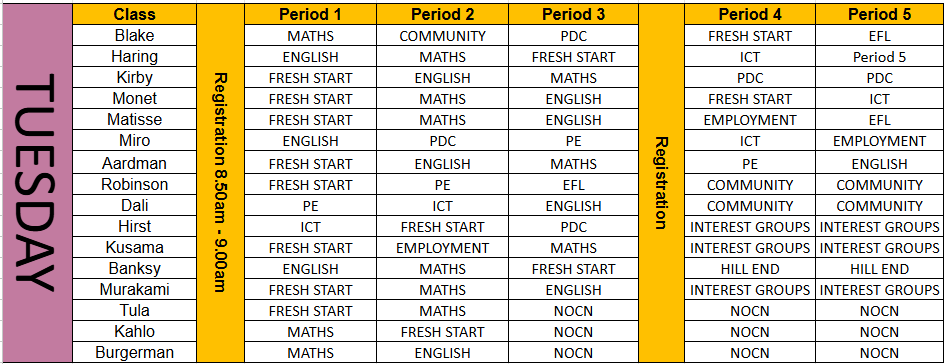Tuesday 8.50am – 3.00pm (6 hrs and 10 mins including free association time)