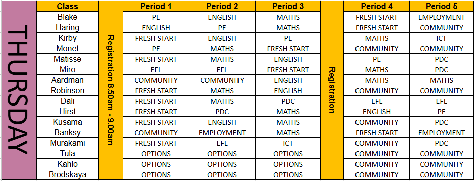 Thursday 8.50am – 3.00pm (6 hrs and 10 mins including free association time)