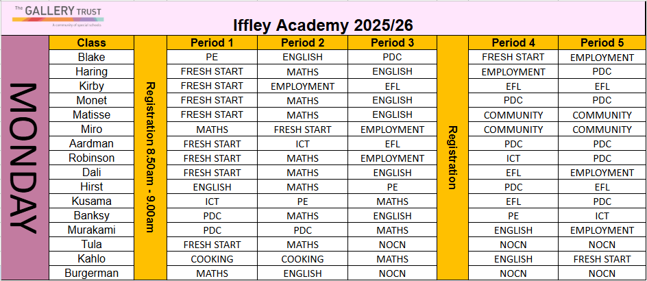 Monday 8.50am – 3.00pm (6 hrs and 10 mins including free association time)